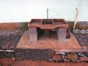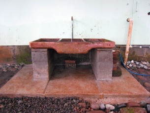 This is the finished patio extension. We ran out of large gravel for the end of the channel but the sink is in, plumbed and everything works like a dream. I’ll get back and put some finishing touches on the pillars that hold up the sink and add a backsplash with tile shards and grout, extend the drainage pipe to a catch basin with a valve to divert water to two simple water filter basins dug into the hillside, filled with rocks, gravel and then sand in that order, to filter out toxic particulates from washing paintbrushes, etc. in the outdoor sink. At the base of the hill is a Riparian zone , the river that leads to the waterfalls and swimming hole further down the ravine, so we really want to filter all the gray water we can before it enters the watershed. When it rains really hard the water comes off the roof with an arching trajectory and lands at the outer half of the dark gray large gravel strip. It percolates down into a drainage pipe we drilled a million holes in that carries the water beautifully down the channel parallel to the house and delivers it to a zone well away from the foundation. When I first got here, the outdoor sink zone was a boggy mudhole and significant erosion was taking place. The swampy area was a Dengue mosquito attractor and had to be resolved.
